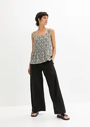 Bukse i lett lin- og viskosemiks med vide ben