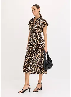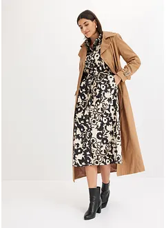 Midikjole i crinkle-vevd bomull med lommer og 3/4-lange ermer