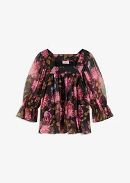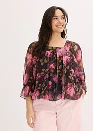 Crinkle-bluse, 3/4-lang arm, Turn-up