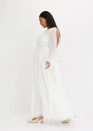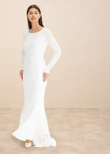5 artikklerBrudekjole i glinsende sateng med blomsterapplikasjon
