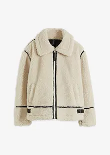 Teddy-fleecejakke i A-fasong med splitter i siden