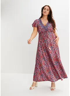 Jerseykjole i formstabil bomull med utskrådd skjørt