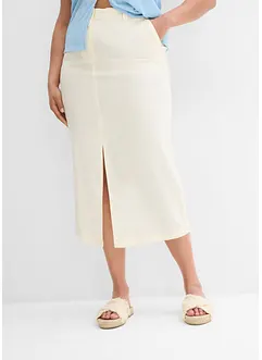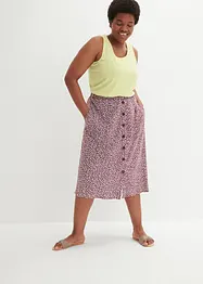 Stretch-cordskjørt med knappestolpe, midi-lengde
