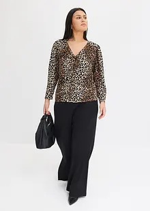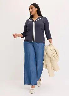 Langermet topp i viskosemiks med kontrastfarget innfelling i halsen