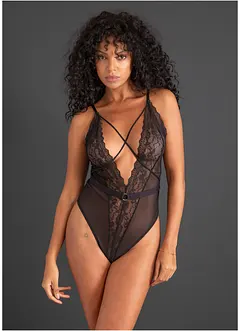 Korsett og stringtruse i blondemateriale (2-delt sett)