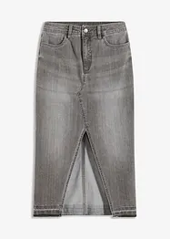 Stretch-cordskjørt med knappestolpe, midi-lengde