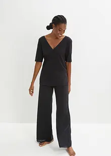 Pyjamas med ribbetopp og flanellbukse med glittergarn