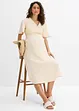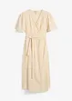 Mammakjole i vevd, pustende bomullsmusselin i omslagsmodell med V-hals og flatterende, korte ermer med rynking på skuldrene. Knytebelte til å regulere vidden i midjen.