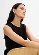 Ermeløs topp i materiale med rynket effekt og rett modell samt med rund hals