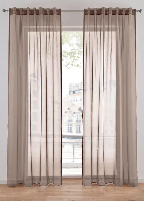 Denne transparente gardinen skaper en flott ramme for vinduet. Den ensfargede, transparente voile-gardinen er tilgjengelig i mange flotte farger og med mange opphengsmuligheter. Det fintrådede stoffet har et lett, fint fall. Det er lettstelt og kan vaskes i maskin. Gardinen henges enkelt opp med rynkebånd, maljer eller hemper. Uansett om den henger løst eller samles med en dekorativ sløyfe, denne gardinen skaper en lett og luftig atmosfære i ethvert rom.