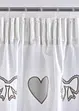 En romantisk gardin av ren økologisk bomull i flott landstil. Øverst er den dekorert med flotte hemper og broderte hjerter. Små prikker fremhever landstil-looken. Matchende gardinholder gir gardinen et ekstra flott preg.